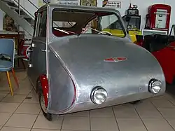 | Prototyp | 1950 | schräge Front, ohne Knick in Frontscheibe übergehend, Motor von Zündapp mit 198 cm³, Stahlblechkarosserie, dreirädrig | 1 | |