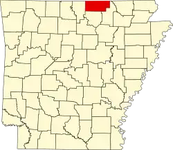Das County liegt auf dem Ozark-Plateau im äußersten Norden von Arkansas, grenzt im Norden an Missouri und hat eine Fläche von 1607 Quadratkilometern, wovon sechs Quadratkilometer Wasserflächen sind. Es grenzt an folgende Countys: