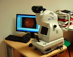 Eine Funduskamera, auch Netzhautkamera, ist ein ophthalmologisches Gerät, mit dem fotografische Aufnahmen der hinteren Augenabschnitte (Netzhaut) angefertigt werden. Bereits ab 1915 gab es die Nordensonschen Netzhautkamera[1] in der Augenheilkunde.