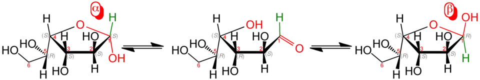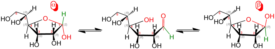 Bei allen Monosacchariden mit mindestens vier Kohlenstoffatomen liegt in wässriger Lösung ein Gleichgewicht aus offenkettiger und zyklischer Form vor, wobei die Ringform stabiler ist. Hierbei werden Ringe aus fünf Atomen als Furanosen bezeichnet, Ringe mit sechs Atomen als Pyranosen. Auch höhermolekulare Kohlenhydrate (Di-, Oligo- und Polysaccharide) bauen sich aus ringförmigen Monomeren auf.