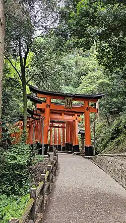 Besonders bekannt sind die Alleen aus Tausenden von orangen Torii auf dem Gelände des Fushimi Inari-Taisha, welche alle Spenden von Personen, Familien oder Unternehmen sind. Sie führen einen Hügel hinauf, auf dessen Spitze, ungewöhnlich für einen Shintō-Schrein, das Allerheiligste (in diesem Fall ein Spiegel) öffentlich einsehbar ist.