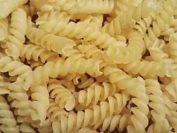 Fusilli (von italienisch fuso „Spindel“),[1] im Deutschen häufig Spirelli oder Spiralnudeln genannt, sind Nudeln in Form einer Helix (wendelförmig) oder einer Stöpsellocke (spiralförmig) mit einer Länge von ca. 4 cm. Je nach Form und Hersteller werden sie auch Eliche („Helices“), Riccioli („Locken“), Girandole („Windräder“) oder Rotini („Rädchen“) genannt. Fusilli bucati („gelochte Fusilli“) sind spiralförmige Fusilli, die in der Mitte hohl sind. Fusilli werden aus Hartweizengrieß, Wasser und Salz hergestellt.