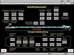 - Schaltvorgänge – Von der Positionsbeleuchtung bis zum Heben- und Senken der Brücke und des Bordkrans lassen sich alle wichtigen Elemente zentral von der Schiffsführung schalten
