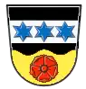 Blasonierung: Über goldenem Wellenschildfuß, darin eine goldene heraldische Rose, in Schwarz ein silberner Balken, belegt mit drei blauen Sternen. (IME vom 10. Juni 1968 Nr. I B 3 – 3000/29 G 14).