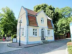 Das eingeschossige traufständige verputzte Gebäude mit hohem ziegelgedeckten Mansarddach wurde 1821 als Offiziershaus für das Schloss Ritzebüttel gebaut. Die symmetrische straßenseitige Eingangsfassade hat ein großes Dachhaus mit Rundbogenfenster.