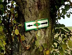 | Markierungszeichen | Grüne Raute mit roter Hagebutte auf weißem Grund |
