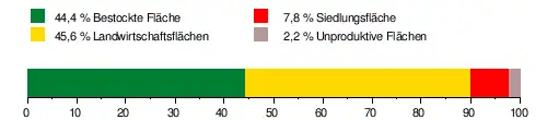 Es besteht zu 44,4 % aus bestockter Fläche, zu 45,6 % aus Landwirtschaftsfläche, zu 7,8 % aus Siedlungsfläche und zu 2,2 % aus unproduktiven Flächen.