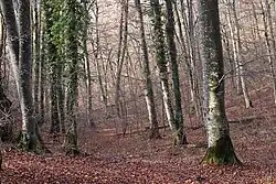 Die Region ist stark bewaldet. Drei Viertel der Parkfläche werden von Wald bedeckt. Bis 600–700 m. i. J. kommen vor allem Mazedonische Eiche (Quercus trojana) und Ungarische Eiche (Quercus frainetto) vor. Die Obergrenze der Gemeinen Hainbuche (Carpinus betulus) und der Traubeneiche (Quercus petraea) liegt bei 800 m. i. J. respektive 870 m. i. J. Darüber wachsen Buchen (Fagus sylvatica).[1]