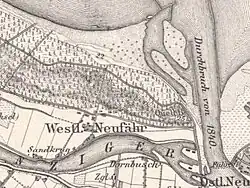 Am 1. Januar 1874 wurde die Kreisordnung für die Provinz Preußen eingeführt, diese wurde vier Jahre später wieder in die Provinzen Ost- und Westpreußen geteilt. Am 25. April 1874 wurde der Amtsbezirk Heubude gebildet. Das Dorf Westlich Neufähr war ein Ort der Landgemeinde Neufähr im Landkreis Danzig (ab 1887 Kreis Danziger Niederung). Die Einwohnerzahl stieg von 576 (in 1885) auf 727 (1905) an. Zuständig war das Amtsgericht Danzig. Evangelische waren bis 1860 noch nach Bohnsack eingepfarrt, für Katholiken war die Königliche Kapelle und ab 1926 die Danziger Liebfrauenkirche Pfarrkirche. Pfarrgemeinde für die Evangelischen wurde 1860 Sankt Barbara in Danzig Neugarten und 1896 Heubude.[2] Im April 1914 wurde der Ort in die Stadt Danzig eingemeindet. Er hatte damals eine Fläche von 103 Hektar und 697 Einwohner.[1]
