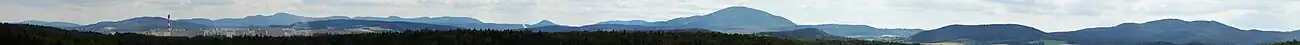 Der markanteste Berg ist hier der Chełmiec (Hochwald) (851 m), dessen Gipfel westlich oberhalb von Wałbrzych die Schlesische Tiefebene überragt. Der Trójgarb (Sattelwald) (779 m) östlich von Marciszów (Merzdorf) hat drei Gipfelkuppen, während die Borowa (Schwarzer Berg) in den Góry Czarne nahe Jedlina-Zdrój (Bad Charlottenbrunn) mit 854 m ü. NN die höchste Erhebung im nördlichen Teil des Waldenburger Berglands darstellt.