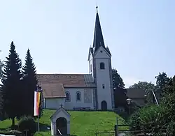 Die Filialkirche hl. Antonius und Lambert, erstmals 1154 erwähnt, ist ein spätgotischer Bau mit teilweise romanischem Mauerwerk im Langhaus sowie barocker Sakristei und Turm.[2]