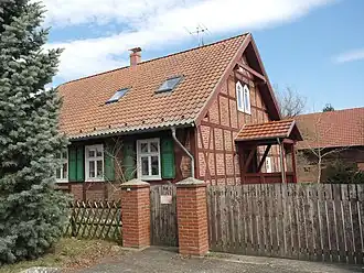 - Büdnergehöft aus Wohnhaus, Stallspeicher, Durchfahrtsscheune und Hofpflasterung (Dorfstraße 17)