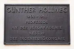 Am 1. Oktober 1956 erfolgte die Ernennung von Günther Hollweg zum ordentlichen Professor für Organisation des Bergbaubetriebes an der Bergakademie Freiberg. 1961 wurde er zum Rektor gewählt. Nach zwei Jahren erfolgte 1963 seine Wiederwahl, doch verstarb er kurze Zeit später im Alter von 61 Jahren.
