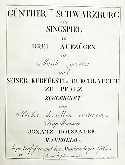Günther von Schwarzburg ist ein Singspiel in drei Aufzügen in deutscher Sprache. Das Libretto schrieb Anton von Klein (1746–1810), ein Jesuit, der nach Aufhebung des Ordens 1773 „Professor für Weltweisheit und Künste“ am Mannheimer Hof wurde. Die Musik komponierte Ignaz Holzbauer, Hofkapellmeister in Mannheim von 1753 bis 1778. Er widmete sein Werk dem Kurfürsten Karl Theodor von der Pfalz.