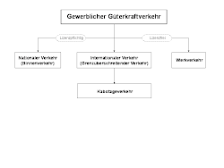 Der Güterkraftverkehr wird in die folgenden Bereiche unterteilt: