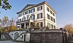 An Stelle der ursprünglichen Moosburg steht heute eine klassizistische Villa (dreigeschossiger Rechteckbau mit Walmdach auf einem erhöhten, vorstehenden Sockelgeschoss), die aus den Steinen der ehemaligen Wasserburg erbaut wurde.