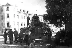 Polnische Widerstandskämpfer der Kompanie "Giewont" des Bataillons "Zośka" sichern Gęsiówka nach der Befreiung (5. August 1944) -