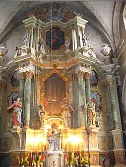 Die große, einschiffige Barockkirche St. Andreas wurde in den Jahren 1722–1726 unter der Leitung des Wormditter Baumeisters Christoph Reimers errichtet. Die Grundsteinlegung erfolgte am 22. August 1722 durch Bischof Theodor Andreas Potocki. Die Einweihung der Kirche erfolgte am 24. Juli 1726 durch Bischof Christoph Andreas Johann Szembek.