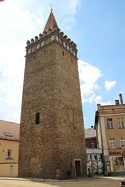- Die Ringmauer entstand um 1350 und wurde 1632 erweitert. Deren Schleifung erfolgte zwischen 1838 und 1860. Im Bereich des ehemaligen Vogtssitzes an der ul. Magristracka haben sich Reste erhalten.