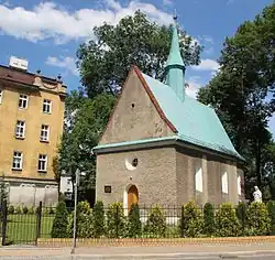 - Die St.-Laurentius-Kirche (Kościół Św. Wawrzyńca) geht bis in das 13. Jahrhundert zurück. Der erste Bau wurde 1428 von den Hussiten niedergebrannt. Erhalten hat sich hiervon lediglich das gotische Portal. Von 1729 bis 1733 wurde ein Neubau im Stil des Barock errichtet. Die neubarocken Turmhelme wurden zu Beginn des 20. Jahrhunderts erbaut.[17]