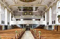 II/P | 21 | Im historischen Prospekt aus der Zeit um 1810; 1985 neobarocker Umbau und Erweiterung auf 23 Register durch Krätzer, Nürnberg; 2012 Restaurierung und weitgehende Rückführung in den Originalzustand durch Klais (Opus 1906) → Orgel | ||||||||