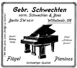 - ↑ Schwechten, Wilh. sen. In: Amtliches Fernsprechbuch für Berlin, 1953, S. 508. „Piano u. Flügelfabr., Lif[Lichterfelde] Köhlerstr. 44“.