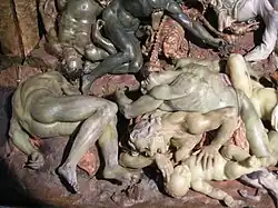 Doch führt auch das mit Allegorien der Vergänglichkeit geradezu überladene Tableau La Vanità della Gloria Umana den Verfall von Leichnamen überaus anschaulich vor Augen. In einem ruinösen Grabgewölbe ist ganz links ein aus einem Sarkophag quellender fauliger Männerleichnam zu sehen, zu dessen Füßen Schädel, ein Hundekadaver und weitere verwesende menschliche Körper liegen, an denen sich Ratten delektieren. Das letzte Stadium der Zersetzung ist durch ein Skelett dokumentiert, das in einer aufgebrochenen Grabskulptur zu sehen ist. Auf einem Podest steht eine Urne. Eine weibliche Personifikation der Melancholie aus Marmor sitzt oberhalb dieser Szenerie. Vom Tageslicht beschienen, wirkt diese Statue nahezu lebensvoll. Hinweise auf den Auferstehungsglauben oder christliche Symbole sind in diesem Memento mori nicht anzutreffen, dafür aber „fast alle Grenzphänomene [...], die von Aufklärung und Klassizismus aus dem Feld des Schönen ausgeschlossen werden“ – was beispielsweise bei Herder auf heftige Ablehnung stieß.[4]