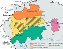 Karte mit den einzelnen Regionen des Weinbaugebiets Gaillac