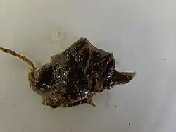 Die Ware kam früher über die levantischen Hafenplätze aus Syrien,[4] Persien, Arabien, zum Teil auch aus Ostindien und bildet wie manche andere solcher Drogen zwei Sorten, in Tränen[5][6] oder Körnern und in Massen oder Kuchen, erstere in helleren, weißen oder gelblichen, durchscheinenden, wachsglänzenden, erbsen- bis nußgroßen Körnern, letztere in dunkleren, bräunlichen oder grünlichen Klumpen, von hellen Körnern durchsetzt.