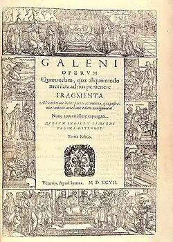 Galenos von Pergamon, auch (Aelius) Galenus (altgriechisch Γαληνός, deutsch üblicherweise Galen, in mittelalterlichen Handschriften und frühneuzeitlichen Drucken auch Galienus;[1] * 129 bzw. zwischen 128 und 131[2] in Pergamon in Kleinasien; † zwischen 199 und 216[3] in Rom), war ein griechischer Arzt, Anatom, medizinischer Schriftsteller, Forscher und Universalgelehrter, der vorwiegend in Rom tätig war.