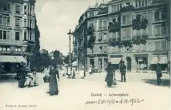 - 1910, Juli: de Grada, Lackerbauer, Hinrikson, Hartung, Leuenberger, Lilie, Loup, Schulze, Sittig, Kägi, Hardmeier, F. [G]imiger u. a., Neupert, Löwenplatz, Usteristrasse[22]