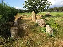 Die aus großen Sandsteinen gebaute Kammer hat eine Länge von knapp 14,5 Meter und eine Breite von 1,6 bis 1,7 Meter. Die Steine der Längsseiten sind nicht mehr vollzählig, denn es fehlen sieben. Der Endstein an der Südwestseite wurde in situ vorgefunden. Der Zugang zur Kammer erfolgte über einen kurzen, antenartigen Vorraum, der durch den eingerückten Türstein am Nordostende erkennbar ist. Der Boden war mit einem Rollsteinpflaster versehen. Eintiefungen in den Boden quer zur Längsrichtung der Grabkammer werden von Tode als Standspuren früher vorhandener Trennsteine gedeutet. Einen Hinweis auf die Art des Ausbaus der Decke gibt es nicht. Eine 17 Zentimeter lange Einmeißelung, die dem Umriss eines Fußes ähnelt, ist auf der Außenseite eines der seitlichen Tragsteine zu erkennen. Der prähistorischen Wissenschaft sind solche Zeichen bekannt. Bei dem Tragstein mit der Fußdarstellung handelt es sich um einen Menhir, der im Galeriegrab verbaut worden war.
