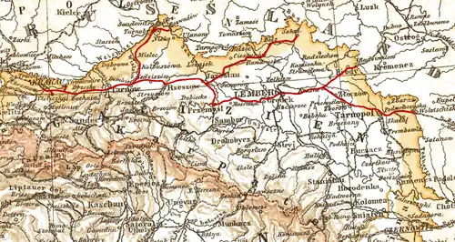 - Krakau–Bierzanów–Podłęże–Dembica (von ÖStB eröffnet 20. Februar 1856)