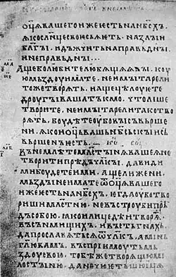 1576 muss sich die Handschrift in der Mariä-Himmelfahrts-Kathedrale in Halitsch befunden haben,[1] 1679 in Moldawien. Spätestens seit 1699 befand sie sich in Moskau, 1920 kam sie ins Staatliche Historische Museum.
