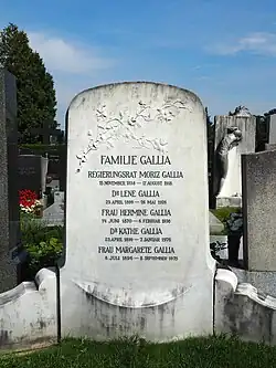 Seine Witwe Hermine kaufte auf Friedhofsdauer eine Dreifachgrabstelle auf dem Hietzinger Friedhof, Gruppe 12, Nr. 101–103; dort befindet sich die Familiengruft der Gallias.