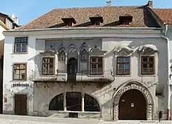 Das Anfang des 15. Jahrhunderts erbaute Haus wurde Sopron 1422 von König Sigismund von Luxemburg geschenkt. Bis 1496 diente das Gebäude der Stadt Sopron als Rathaus. Das Haus zeigt die Baustile Gotik, Barock, Rokoko und Renaissance. Im Toreingang befinden sich gotische Sitznischen. An der Fassade des Gebäudes sind mittelalterliche Konsolen zu sehen.