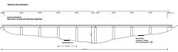 Die rund 14 m breite Brücke wurde zweigleisig mit durchgehendem Schotterbett nach dem Regelquerschnitt für Brückenbauten der Deutschen Bundesbahn dimensioniert.