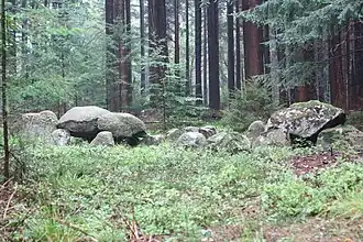 Eine kleine Steinkammer (Heine Steingrab 2) befindet sich im Ostteil des Forstes unmittelbar am Grenzgraben der Landkreisgrenze (Sprockhoff-Nr. 626). Wenig nördlich der Kammer bezeichnen große Steine und Bruchstücke die Lage des zweiten, stark zerstörten Grabes (Heine Steingrab 1 - Sprockhoff-Nr. 625).