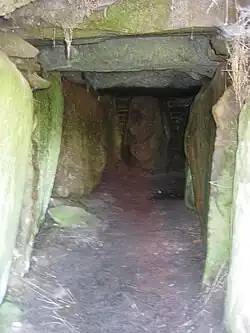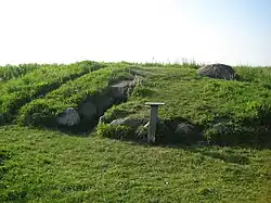 Das zugängliche Ganggrab aus der Jungsteinzeit stammt etwa von 3200 v. Chr. Sein auf der Südwesthälfte noch mit vielen Randsteinen gefasster Hügel hat 17 m Durchmesser und ist 2,5 m hoch. Der Hügel der Megalithanlage wurde in zwei Stufen erbaut. Zunächst bestand er aus einer Rampe. Später wurde der Rest des Hügels gebaut.