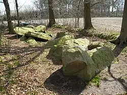Direkt neben der Megalithanlage steht der „Teufels- oder Deuvelstein“. Der Findling ist ein 1,75 Meter langer, 1,15 Meter breiter und 1,1 Meter hoher Granitblock. Seinen Namen bekam er von Sagen, die ihn mit dem Teufel in Verbindung brachten, der die Schälchen mit dem Daumen in den Stein gedrückt haben und für eine größere Bruchstelle verantwortlich sein soll. Auf seiner gewölbten Oberfläche trägt er 66 Schälchen. Wie bei allen Schalensteinen ist der Zweck der Vertiefungen, die sich bei diesem Stein an einer der senkrechten Seiten befinden, unbekannt.