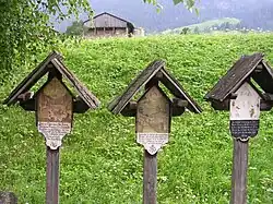 Östlich der Wegkreuzung der Zeller Iselbrücke befinden sich vier Votivbilder. Sie stammen aus der zweiten Hälfte des 19. Jahrhunderts bzw. der ersten Hälfte des 20. Jahrhunderts und sind mehreren bei Unglücken zu Tode gekommenen Menschen gewidmet. Bei den Votivbildern handelt es sich um volkstümlich bemalte Bildtafeln, auf denen sich jeweils sakrale Darstellungen und ein Text zu den Unglücksfällen befindet.