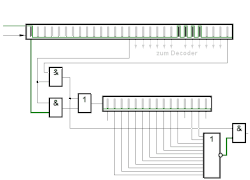 - prüfen, ob Rahmenimpulse ineinanderlaufen (durch Verzögerungsleitung DL3 und dem folgenden ODER-Gatter)