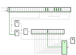 Sollte es sich um synchrones Garbling halten, so wird im Oder-Gatter die Antwort nicht weitergeleitet. Bei Auftreten von Scheingarbling wird genau dieser Takt (bei 15,95 µs) einfach nicht verwendet.