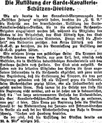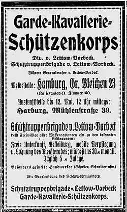 Das Garde-Kavallerie-Schützen-Korps entstand im April 1919 aus der Garde-Kavallerie-Schützen-Division, der Marine-Division und weiteren Freikorps.