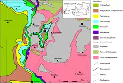 - ↑ Rudolf Oberhauser und Wilfried Rataj: Geologisch-Tektonische Übersichtskarte von Vorarlberg 1:200.000. Wien 1998.