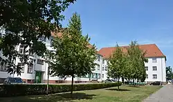 Neben Wohnungen entstanden auch für die Nahversorgung benötigte Geschäfte. So wurde 1926 an der Ecke Westernplan/Martin-Anderson-Nexö-Straße eine Bäckerei gebaut. Es entstanden auch Drogerie, Lebensmittelgeschäft und Frisör. Die Straßen wurden in Nord-Süd-Ausrichtung durch die Siedlung gelegt, wobei zwischen den Erschließungsstraßen und die in die Blöcke führenden Wohnstraßen unterschieden wurde.