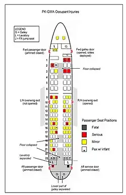 Infolge von Triebwerksausfällen durch Hagel und großer Niederschlagsmengen verunglückten auch: