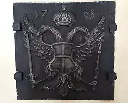 Ein während des Baus des Hoteltraktes aufgefundener Markstein weist Kürzel und Jahreszahlen aus, die bislang noch nicht sicher gedeutet sind.