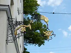 Das Gebäude besteht aus elf zu fünf Achsen und ist mit einem Satteldach gedeckt. Die obere Fensterreihe steht auf einem profilierten Gurtgesims. Unterhalb des Daches verläuft ein profiliertes Traufgesims, welches an den Giebelschrägen fortgesetzt wird. Der Zugang zum Gasthaus erfolgt durch eine Rechtecktür in profiliertem Steingewände auf der Westseite. Der Ausleger an der südwestlichen Ecke stammt von circa 1800 und zeigt ein Doppeladlerschild. Im Inneren befindet sich ein zweiläufiges Treppenhaus mit Holzbalustergeländer aus dem 18. Jahrhundert. Der Saal im Obergeschoss besitzt eine neubarocke stuckierte Korbbogentonne und wurde um 1900 eingerichtet.