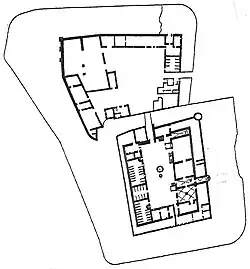 - ↑ Erdgeschoßgrundriss mit Vorburg 1677, ThStA Gotha (E XI, Nr. 37/38, Bl. 165/166) Gotha 1677, umgezeichnet durch Beatrice Waldheim